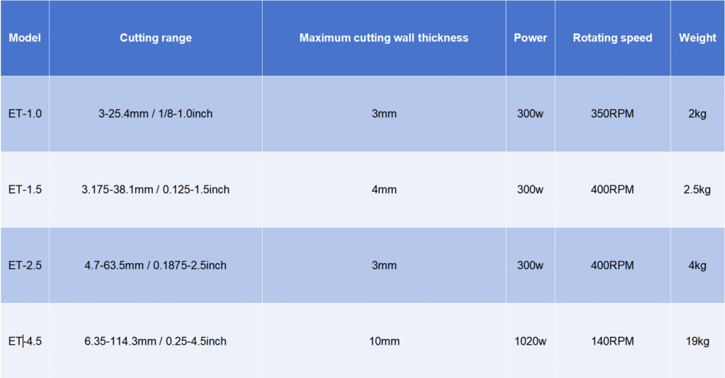 Special thin-walled stainless steel pipes are processed with high precision, and the flat ends are fast and efficient. There is no burr on the rear end surface of the pipe flat end processing. The machine body is light and compact and easy to carry, with high processing efficiency and strong power.
